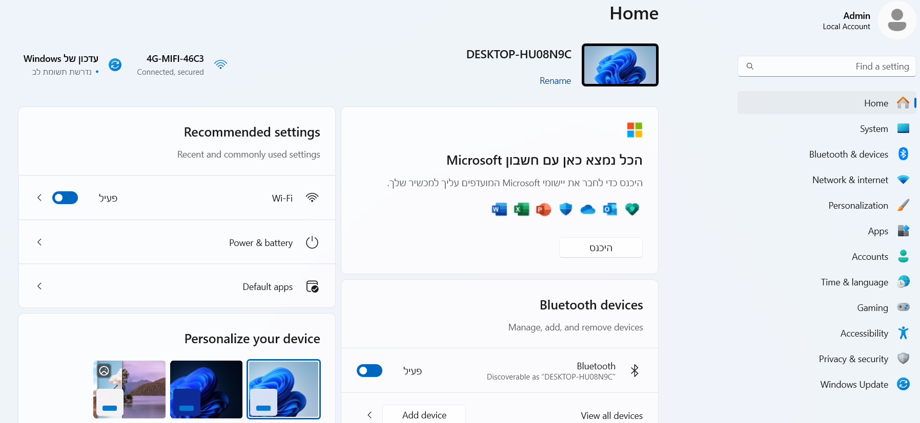 אבל בהגדרות עדיין מופיע תפריט באנגלית, כמו בתמונה לעיל.