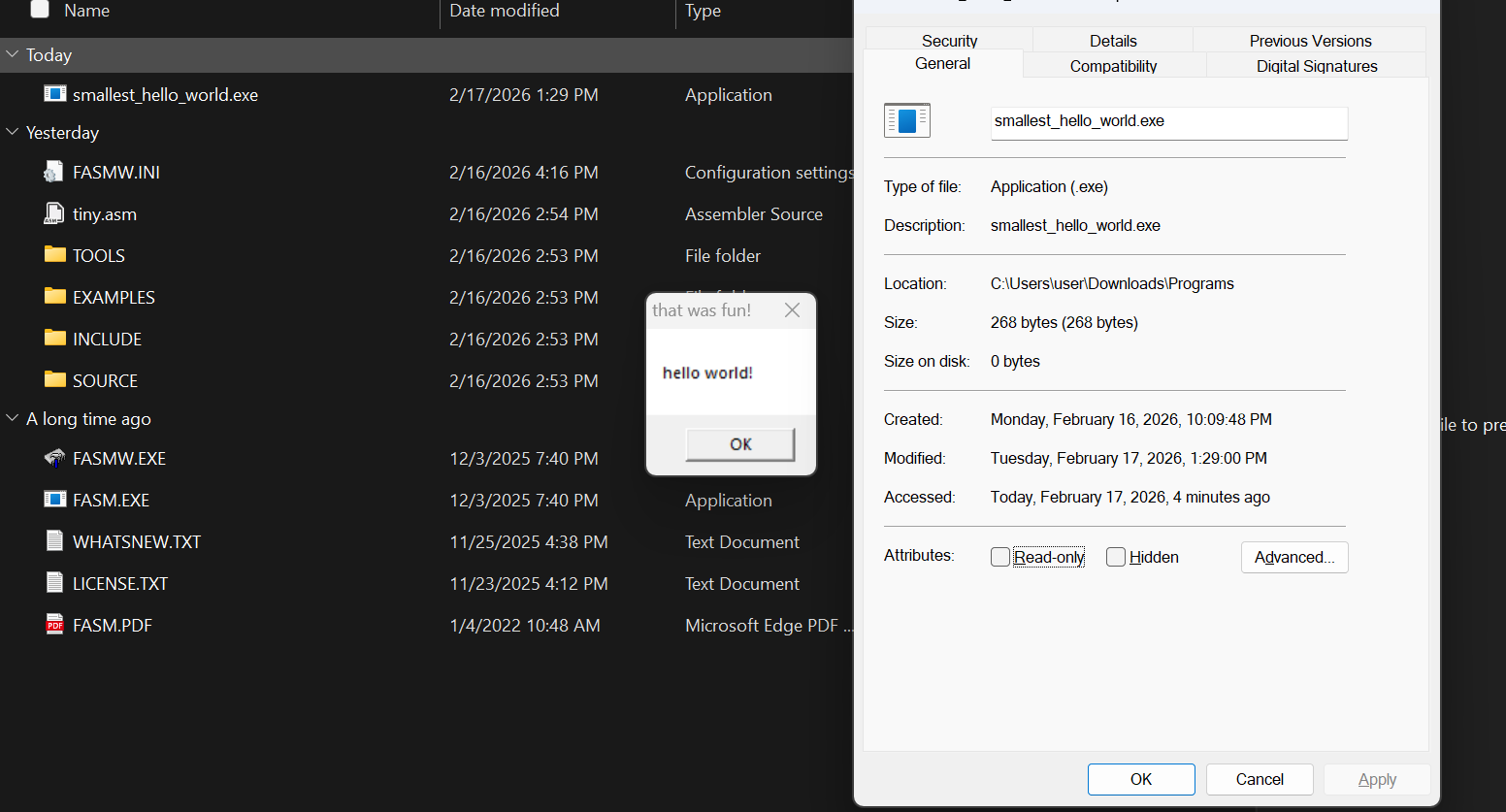 @אלישע-מואב-0 @אביגדור-ברמן מתברר שדרסתי בטעות את ה data dirctory ומכיוון שזה קובץ קצת מוזר ווינדוס ניסה לתקן אותו בריצה הראשונה דרך קובץ dll שנקרא apphelp וספציפית בפונקציה SepRouterHookIAT שמשמשת כ hook לקריאה חיצונית של ה IAT ומכיוון שכתבתי עליו טקסט (הכותרת של החלון) שבקריאה שלו ככתובת יוצא כתובת של זיכרון רחוק שלא הוקצה קופצת שגיאת access violation בפעם הראשונה