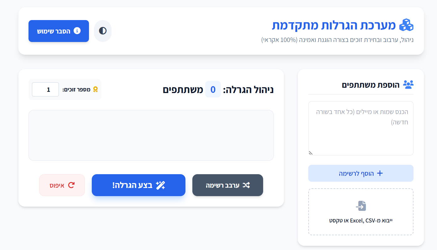 שתי המערכות אכן מיועדות לבחירה אקראית של משתתפים, אך הן פועלות בצורות שונות מאחורי הקלעים (ברמת קוד ה-JavaScript). הנה פירוט של ההבדלים בשיטת הפעולה ורמת האמינות המקצועית שלהן: