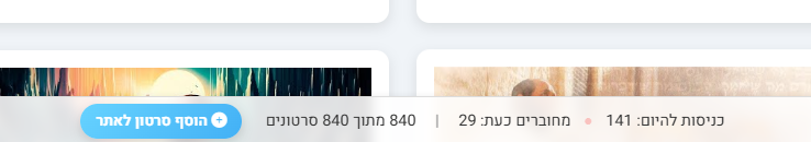 כשהעליתי את האתר, אני חושב שהיה 744 סרטונים, משהו כזה, וכעת יש כ-840 סרטונים!כמעט מאה סרטונים נוספו בימים אלה על ידי המשתמשים בלבד מאז הקישור להוספת סרטונים נפתח לציבור הקדוש!