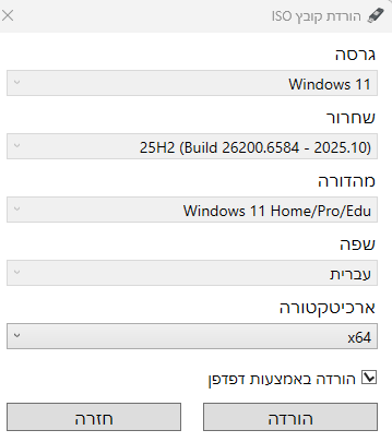 יש לציין כי העדכון 25H2 כולל שיפורים מינוריים בלבד ויותר פשוט לעדכן מכאן (מוריד פחות מ-200kb בשביל לעבור לגרסה 25H2) מאשר להוריד קובץ ISO שלם.