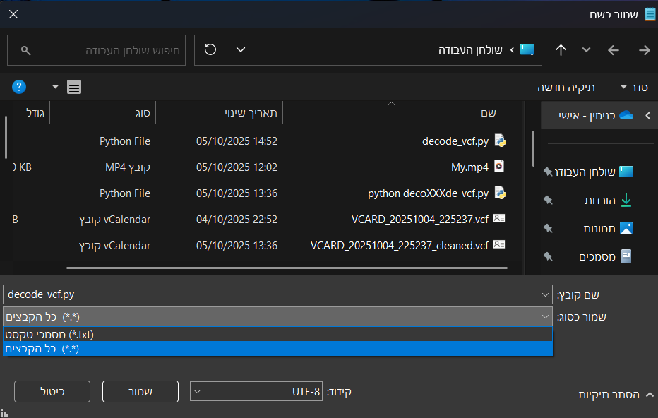 ומחליפים את הנתיב בהתחלה בנתיב של הקובץ אותו רוצים להמיר ושומרים בשם "decode_vcf.py" (לדוגמא, רק הסיומת אחרי הנקודה חשובה)