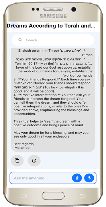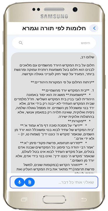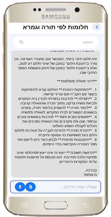 i מלמד מאפשרת לכם להקליט את השאלה בקולכם ללא צורך בהקלדה ידנית, כך שאתם מקבלים מענה מדויק ומהיר ביותר.פתרון חלומות מקצועי ומבוסס מקורות