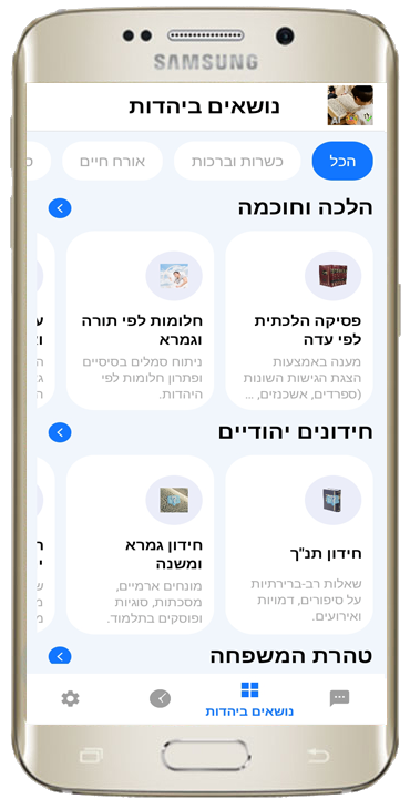 🧑️ כאשר המשתמש בוחר נושא, הוא למעשה פונה ל**"פוסק הייעודי"** שמוגדר אך ורק לנושא זה.