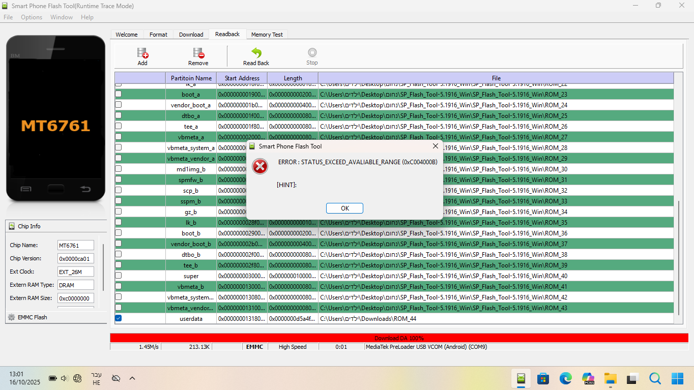@YOLEVI כתב בבעיה | שגיאה בשאיבה ב sp flash tool: