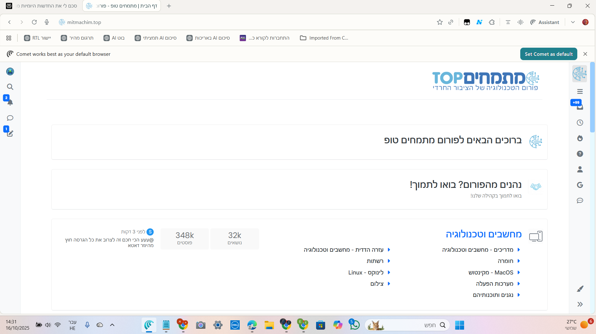 @א.מ.ד. כתב בהמלצה | הכירו את COMET – דפדפן ה-AI האג'נטי של Perplexity ששוחרר לכולם, + קישור לקבלת מנוי PRO לחודש הראשון בחינם!: