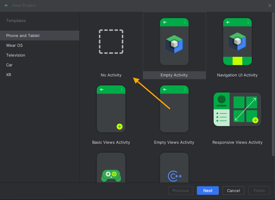 אחרי שהתקנתם מומלץ לבחור בNo Activity תלוי מה הפוריקט שלכם