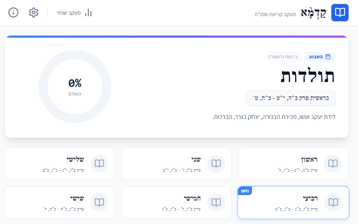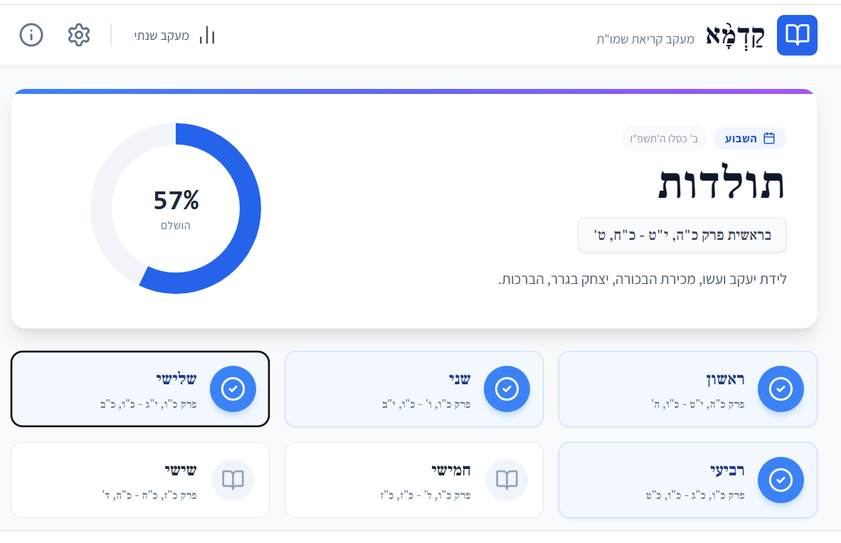 את קַדְמָ֨א - מערכת ידידותית למעקב ורישום אחר קריאת שנים מקרא ואחד תרגום