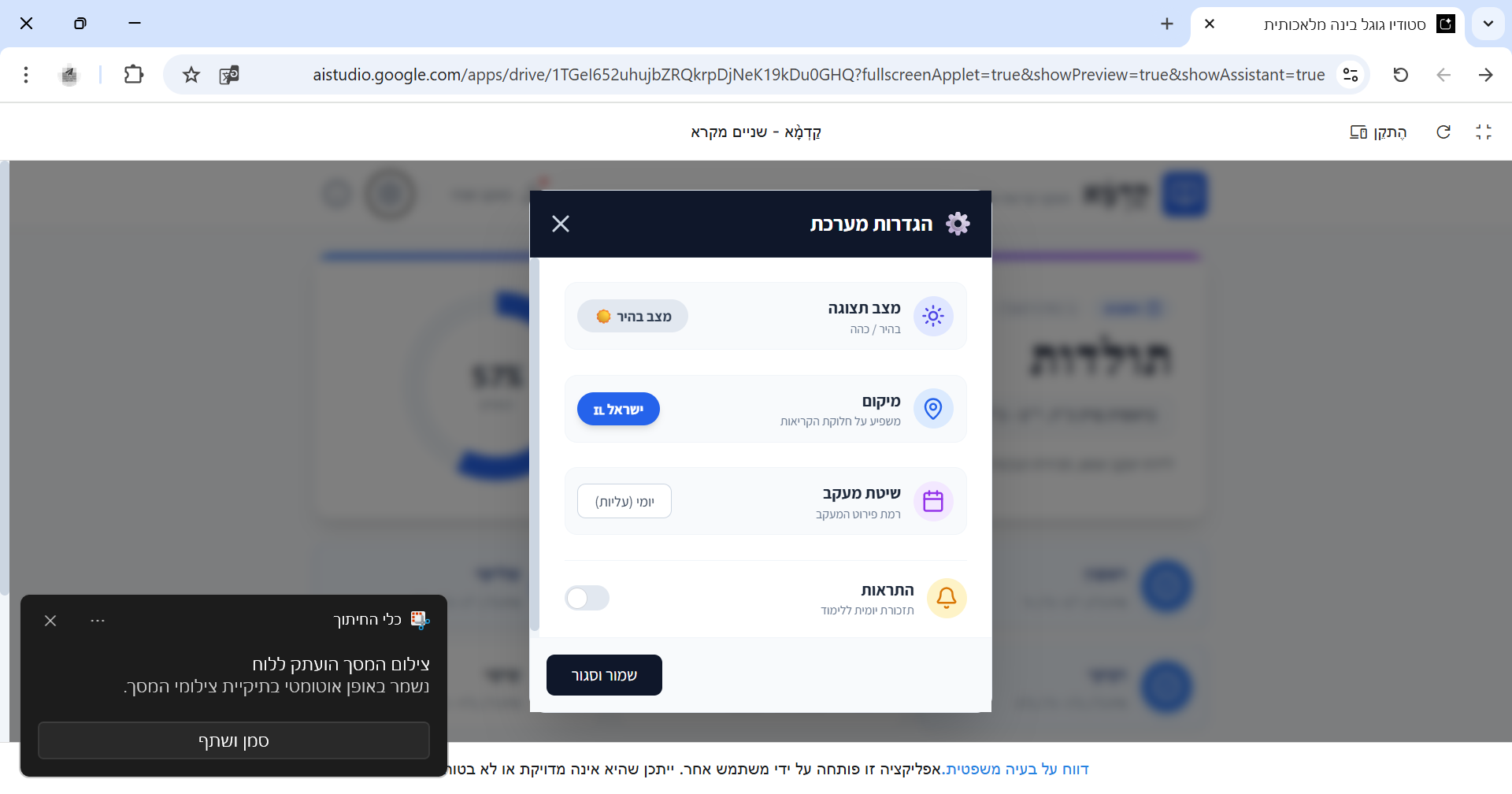 ניתן להתרשם מהפרויקט ב- AI TUDIO כאן (להוריד כוכביות)