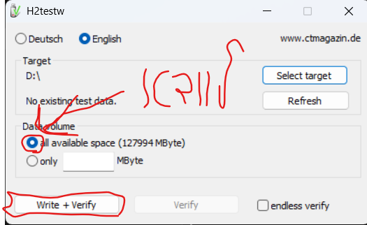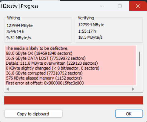 אבל במקרה הנפוץ, שהתוכנה כן מצליחה לכתוב על הדיסק אבל הגודל מזויף, מה שכדאי לכתוב זה "It says that the flash drive contains 128 GB, but in reality it only contains 88.0 GB." ולשנות את 128 לגודל שהיה אמור להיות הדיסק ואת 88.0 לגודל שהתוכנה כותבת שיש בפועל.