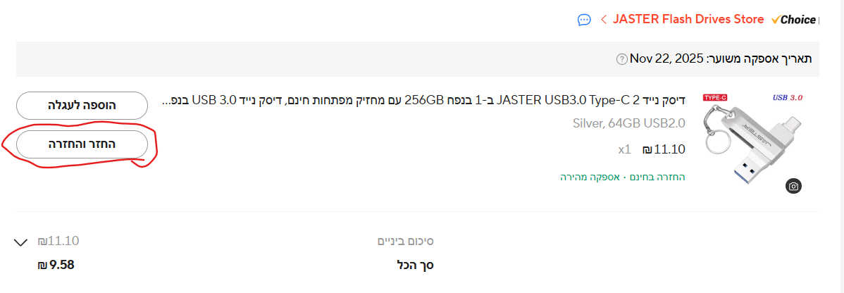 פותחים בקשת החזר בעליאקספרס (הם בדרך כלל מאשרים החזר בלי להחזיר את המוצר)