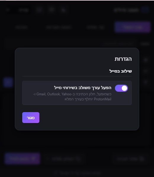 והפעם שילוב התוסף בתוך שרותי המייל השונים!