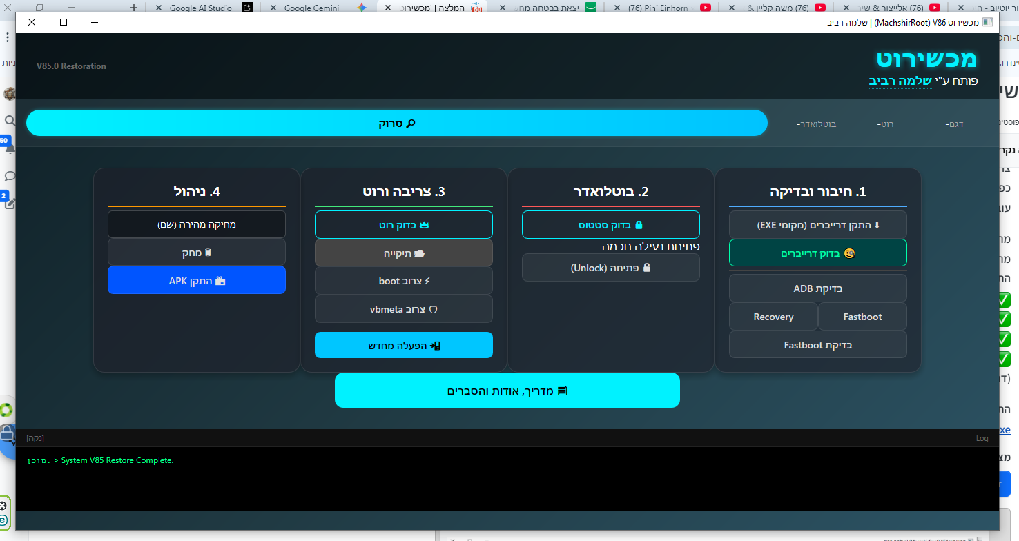 בדיקת קיום דרייברים": המחשב סורק את המערכת ובודק אם מותקנים דרייברים של MediaTek או Google, ומודיע לך.