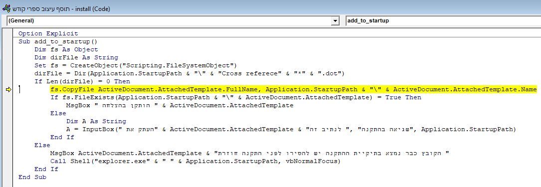 יש לי וורד 2007, התקנתי תוסף עיצוב תורני חינמי. כעת פתאום הוא נעלם, ואני לא מצליח להתקין שוב הוא מראה לי הודעה ואם אני לוחץ על הכפתור האמצעי הוא פותח את ויזואל ביסיק, ומראה לי את השורות הבאות יש למישהו עצה בשבילי?