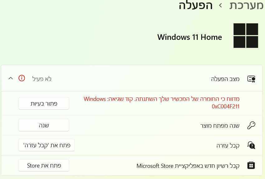 קניתי מחשב חדש עם וינדוס 11. בשביל לשנות רקע הוא דורש להפעיל את וינדוס. אני מגיע למסך כזה: