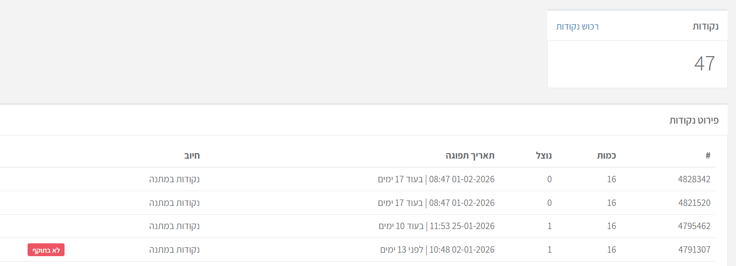 חוץ מזה כל חודש מקבלים 16 נקודות