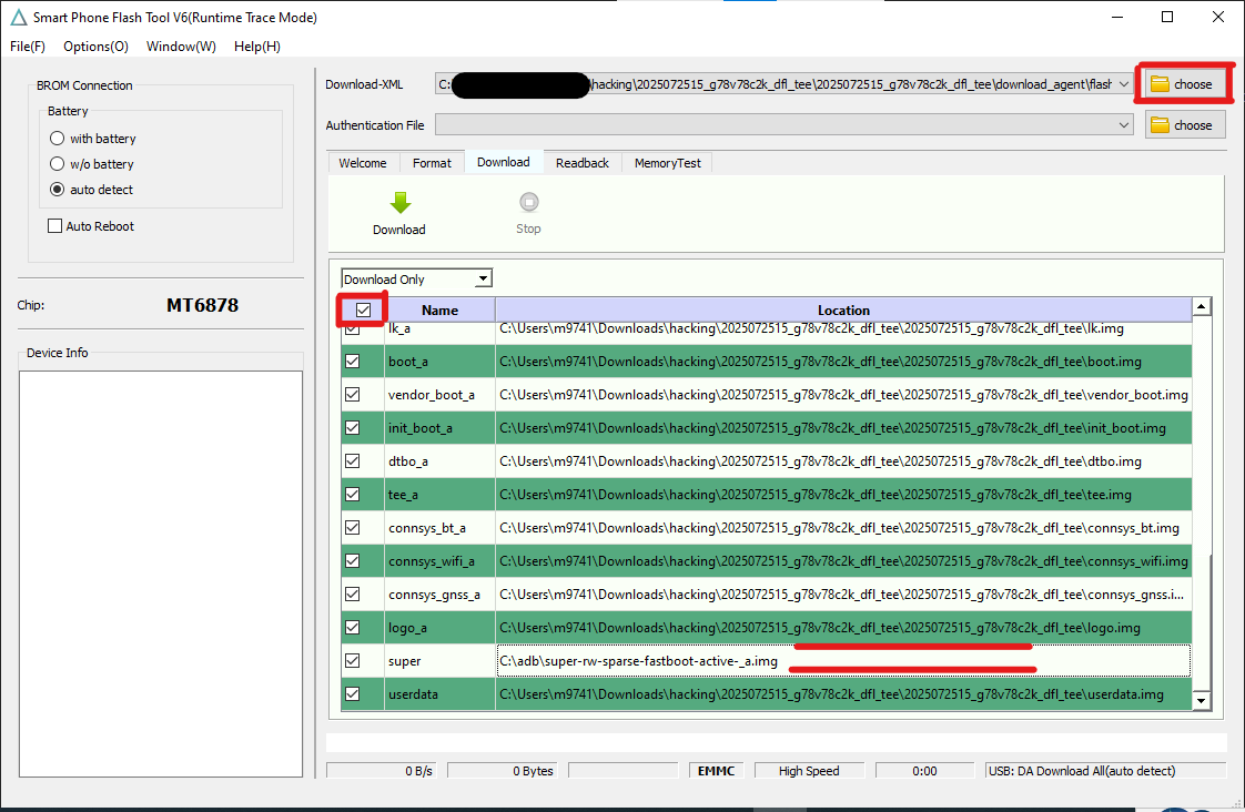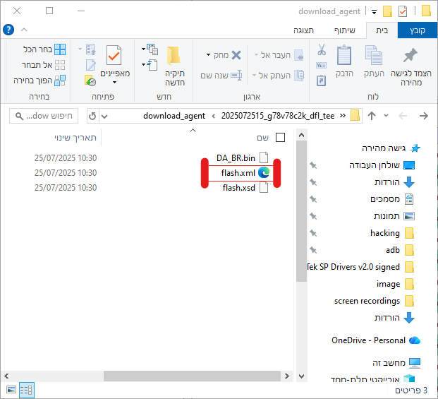 טוענים קובץ flash.xml מתוך התיקיה download agent שנמצאת יחד עם כל הקושחה