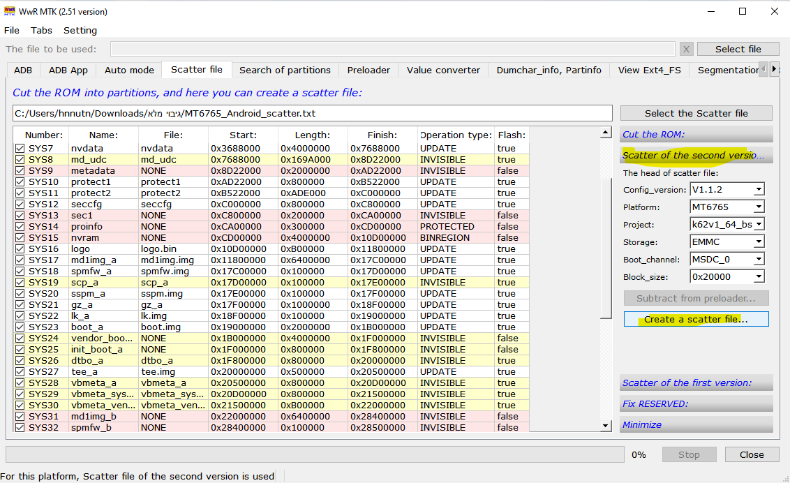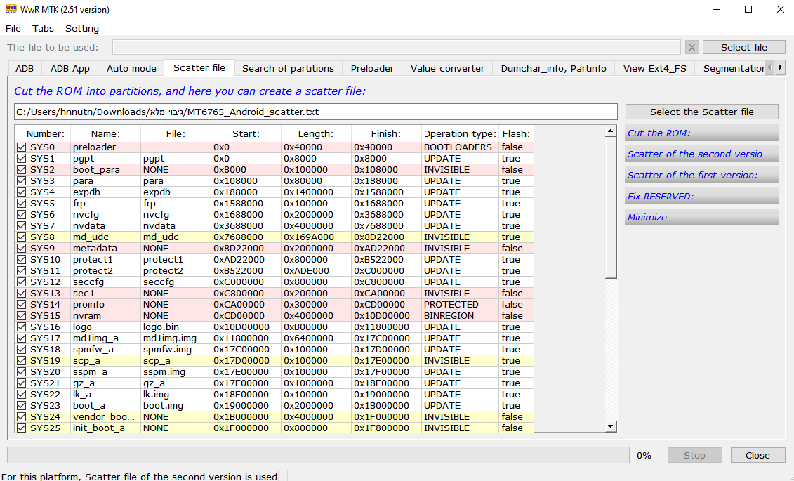 הרבה פעמים בשאיבת רום ע”פ המדריך הזה הקובץ סקאטר יוצא משובש וחסר ולא מופיעות כל המחיצות ב sp flash tool, שאלתי, חיפשתי, כולם אמרו לי או לערוך ידנית שזה די מסובך או להוריד מוכן.