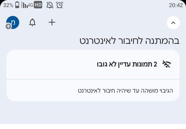 האפליקציה מונעת גיבוי תמונות בטענה שאין חיבור לאינטרנט. אבל יש חיבור.