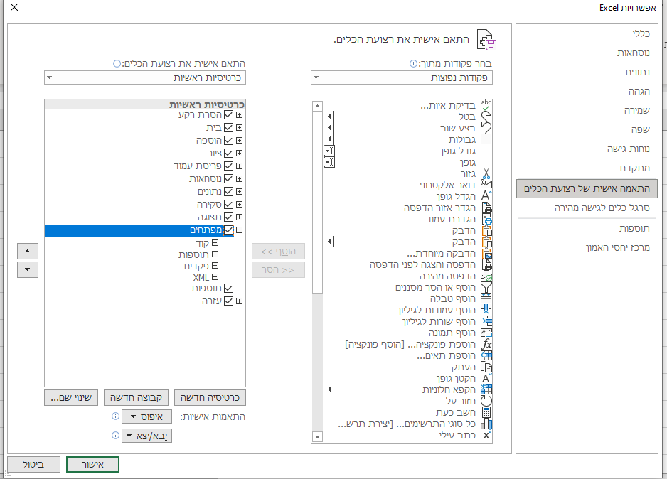לחצו לחיצה ימנית על מקום כלשהו ברצועת הכלים למעלה.