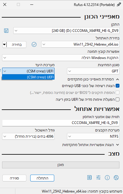 בעיה | פריסת WIN 11 בRUFUS ל- BIOS
