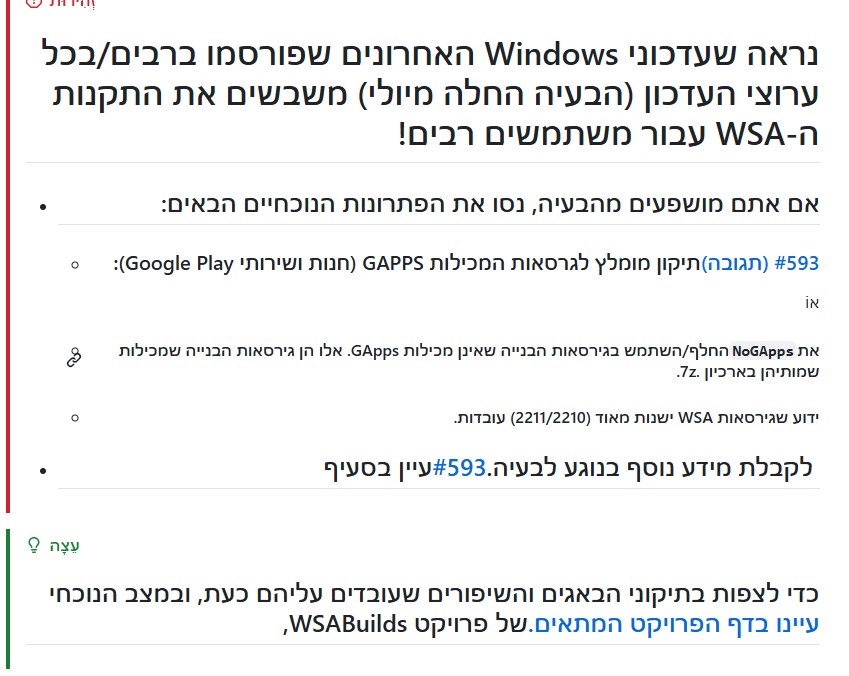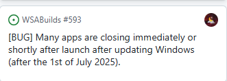 באג | תקלה בWSA מאז 25H2 (ככל הנראה)