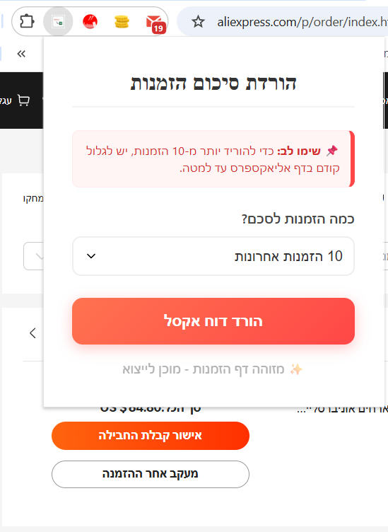 שיתוף | תוסף חדש להורדת אקסל סיום הקניות באליאקספרס