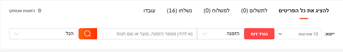 • ייצוא מותאם אישית: ניתן לבחור מספר ספציפי של הזמנות להורדה.