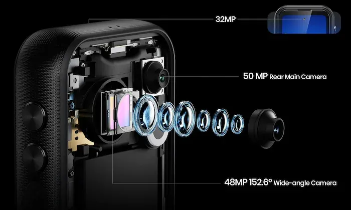 • מצלמה ראשית של 50MP, מצלמת 48MP עם זווית צילום רחבה מאוד של 152.6° (יש שהגדירו אותו "שילוב של מיני סמארטפון ומצלמת אקסטרים"), מצלמת סלפי של 32MP (דבר שטרם נראה בעולם המיני סמארטפונים)