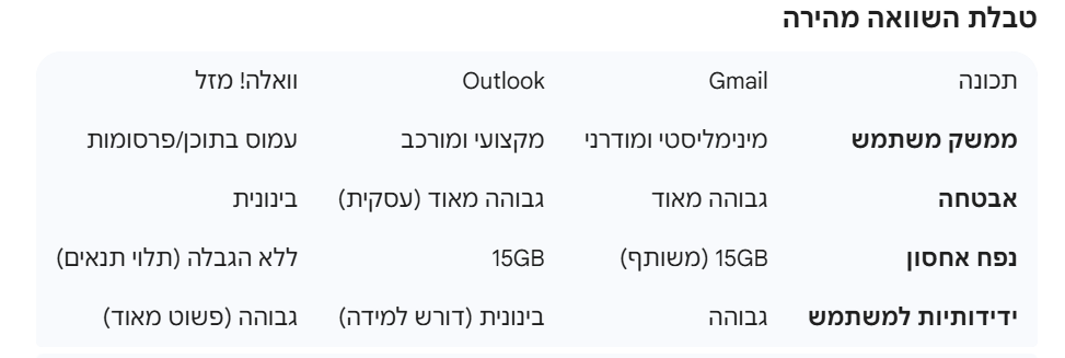 גימייל, וואלה מייל, או אאוטלקמי שיש לו מייל באאוטלק או וואלה מייל, ויכול לעדכן מה עדיף והאם הם עדיפים על גימייל