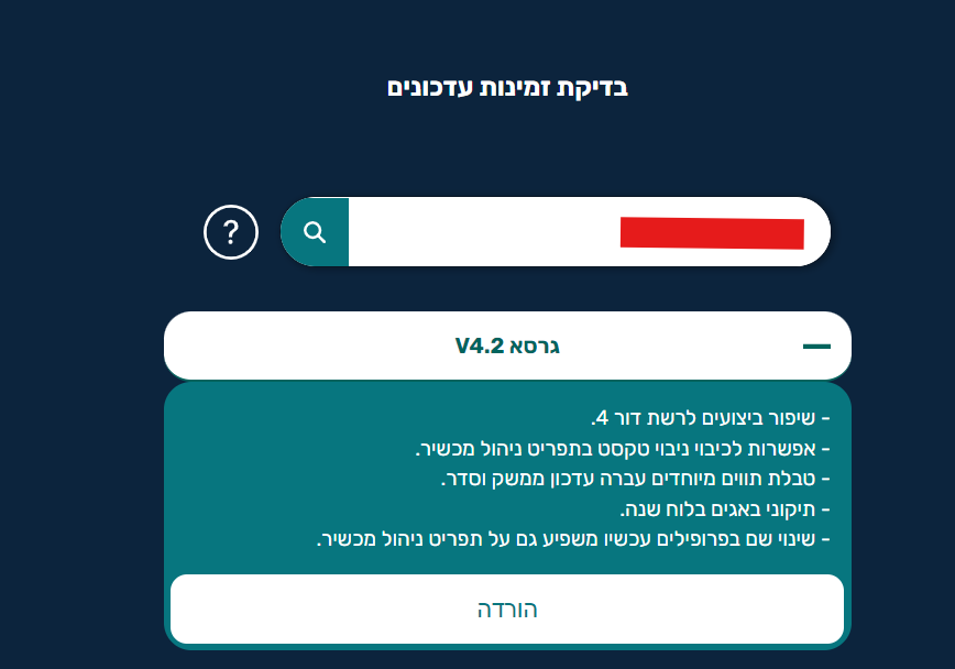 • כעת תופיע הגרסה העדכנית ביותר למכשיר שלכם, בלחיצה על פלוס תופיע רשימת השיפורים לגרסה הזה. לחצו להורדה.