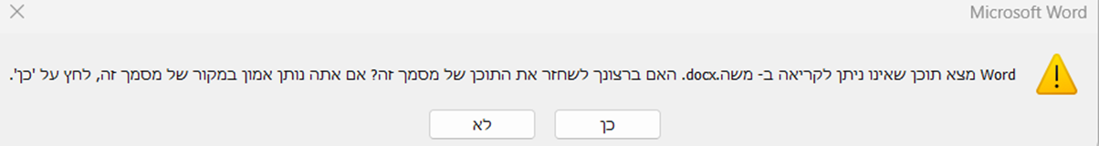 בעיה | קבצי וורד פגומים