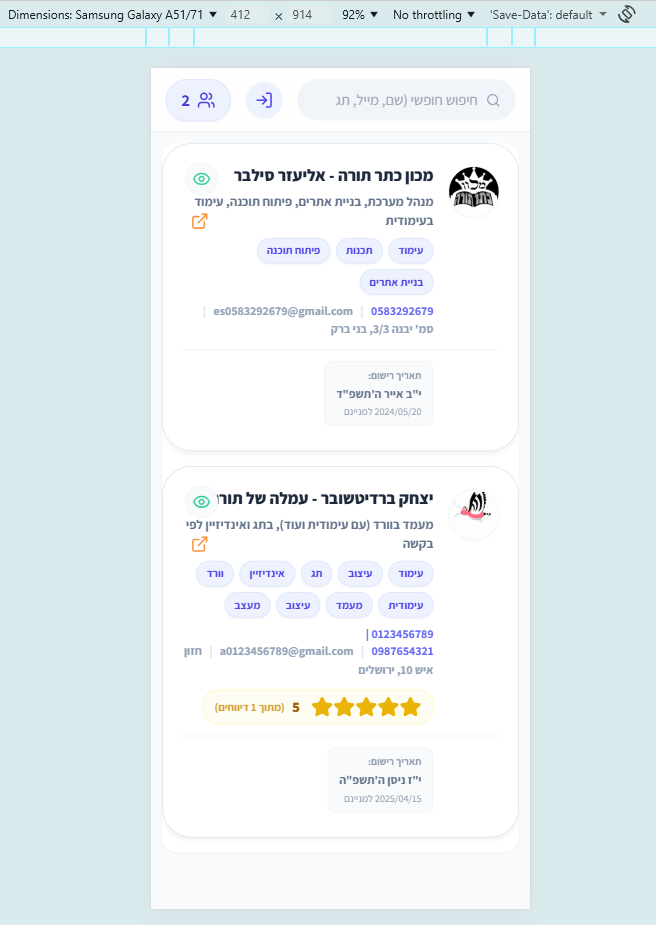 האתר כולל חיפוש משוכלל למי שמחפש בעלי מקצוע, וכן דף פרטי לכל חשבון, אותו תוכלו לשתף.