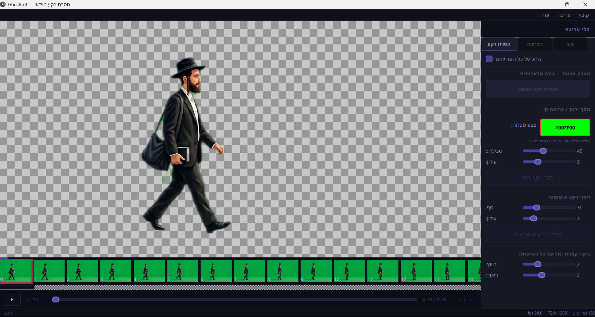 בסוף הפנמתי שהדרך היחידה היא לעשות סרטון עם מסך ירוק ב AI ולהוריד לו את הרקע ולייצא ל-GIF