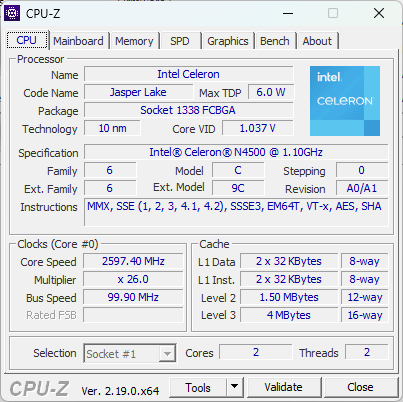 CPU-Z – אימות דגם המעבד והזיכרון