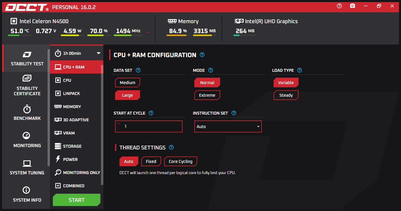 OCCT – בדיקת יציבות המעבד (לוודא שהמחשב לא קורס).
