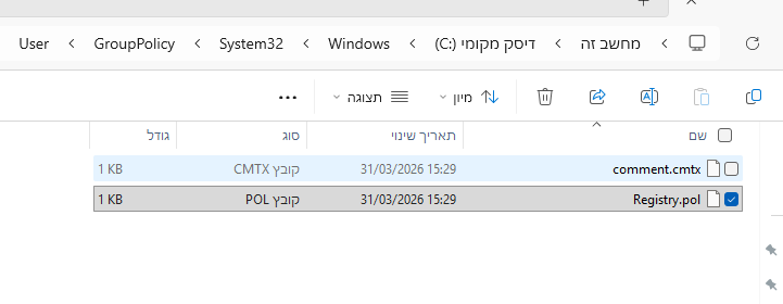 C:\Windows\System32\GroupPolicy\User נקרא: Registry.pol