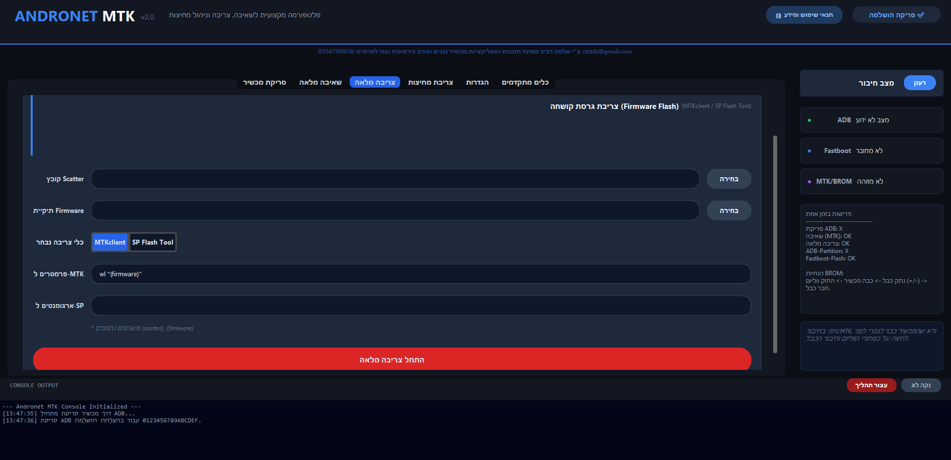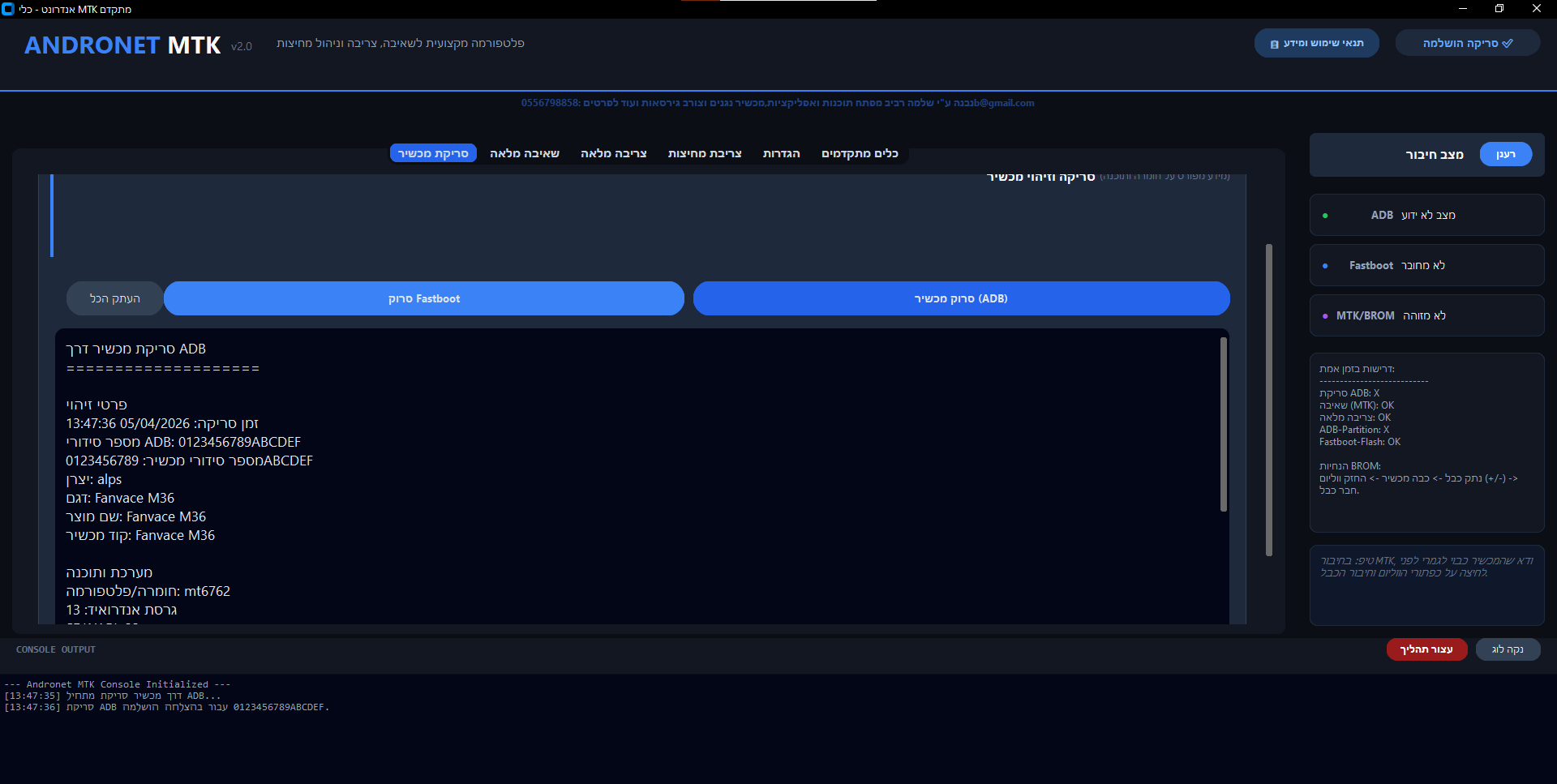 בגלל שזה בנוי הרבה יותר מסובך ממכשירוט (דמינו לקמפל פייתון עם MTKclient SP TOOL ADB ועוד... אני עובד שיהיה גם כפתור התקן דרייברים)
