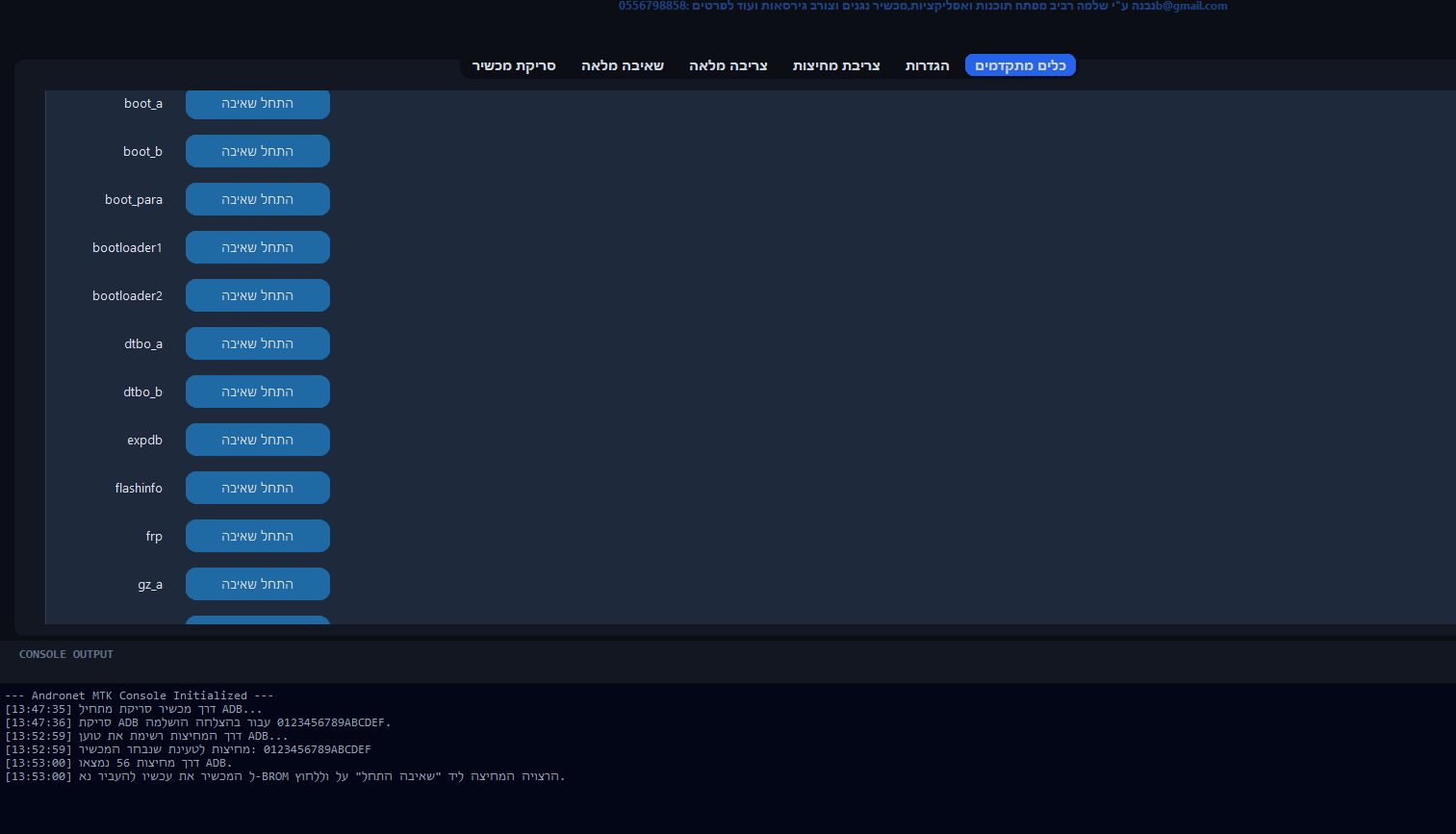 ‏מספר סידורי ADB: 0123456789ABCDEF