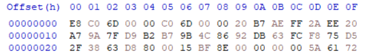 הקובץ מתחיל עם פקודת call (ה opcode E8) למיקום שמרוחק 0x6DC0 בתים קדימה כלומר היסט 0x6DC5 מתחילת הקובץ
