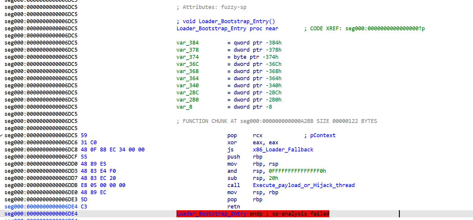 הווי אומר שיש פה קוד שכנראה מטפל בגוש המוצפן הזה וכנראה גם פורס אותו לזיכרון ומריץ אותו