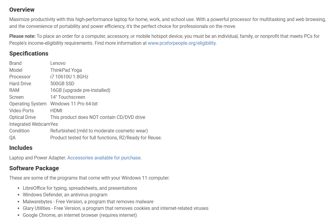 https://www.pcsforpeople.org/כי אצלי חסום, כנראה בגלל הגדרות איזוריות ואין לי VPN לעקיפה