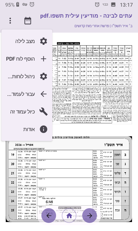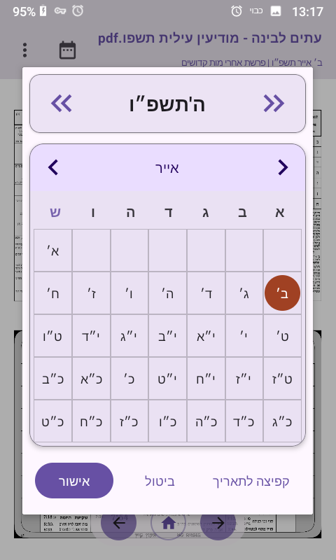 • כלי כיול: אם העמודים בקובץ לא תואמים בדיוק לתאריך, הוספתי אפשרות לכייל ידנית עמוד ספציפי וזה יעדכן את כל השאר.