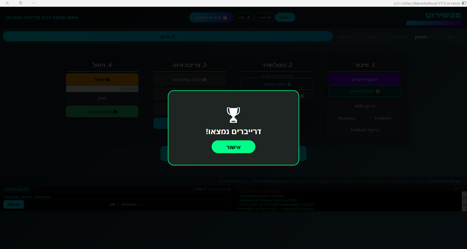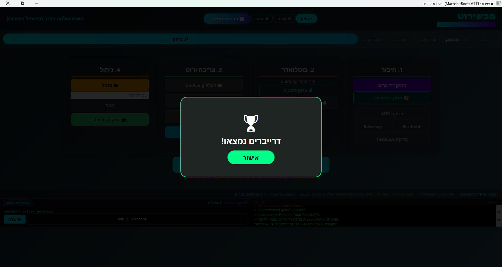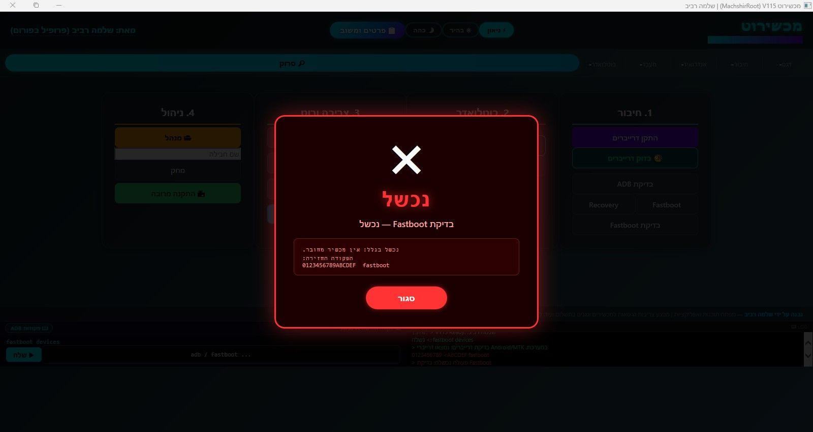מישהו יכול להגיד לי למה אני מקבל במכשירוט הודעה שבדיקת FASTBOOT נכשלה , ומדוע התוכנה לא מזהה את הנגן , למרות שבדיקת דרייברים מופיע שנמצאו ?