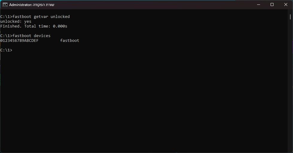 נשלח: fastboot getvar unlocked