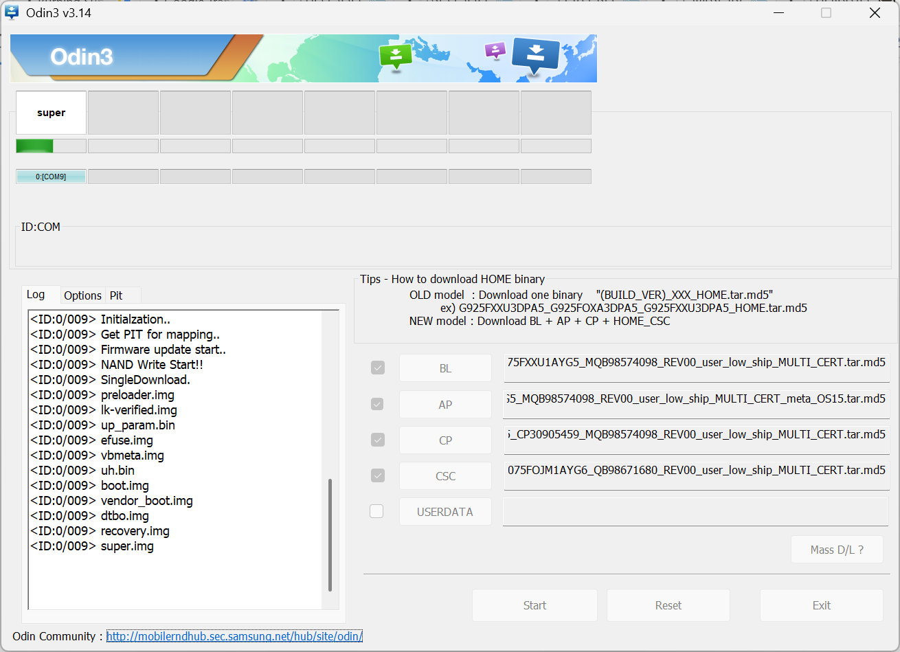 נסה לחלץ את ה super.img מתוך הקובץAP ולארוז אותו שוב כ .TAR ולא לבחור כלום בתוכנה רק את ה super.tar שיצרת תכניס ב תיבה של AP