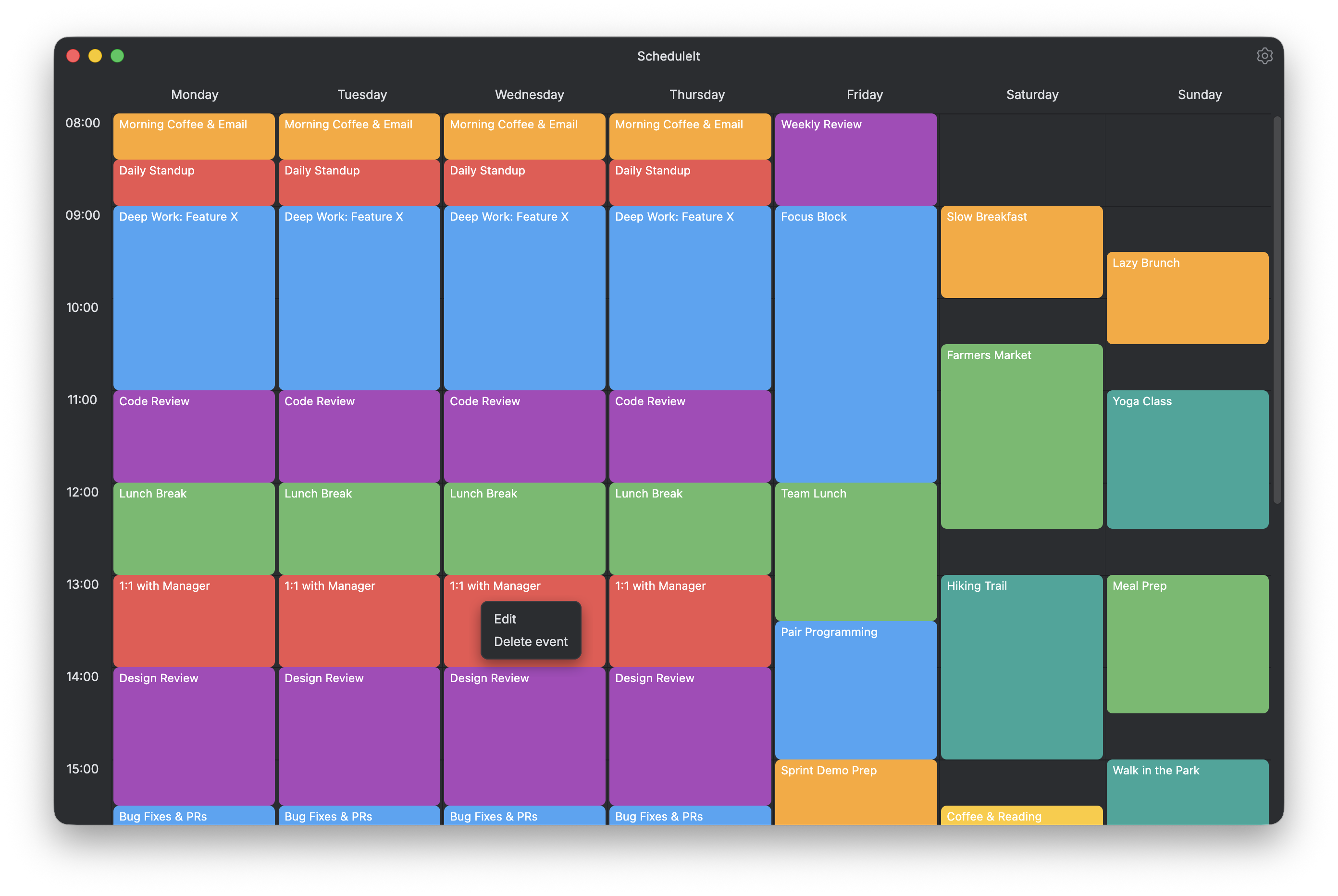אני אוהב לסדר את הזמן שלי כמו בבית ספר, ולא מצאתי תוכנה שעושה את זה פשוט, בלי אינטרנט, אז עשיתי את זה. יש תמיכה מלאה לעברית.