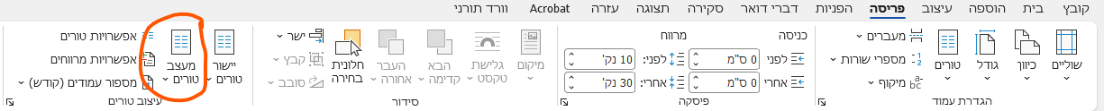 העצבתי טורים בוורד תורני על כל המסמך - באפשרות מעצב טורים.